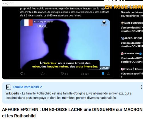 MISE A JOUR DU 03.03.2026 : Macronescu aurait été en contact avec les Rothschild à 19 ans. Or il était l'amant du personnage qui se fait appeler Brigitte Macron depuis 5 ans. Si ce témoignage est exact, cela implique que c'est Jean-Michel Trogneux qui l'a introduit auprès de cette famille. Les soupçons d'une vie sentimentale -- on va dire -- de jeunesse quelque peu dissolue seraient une explication. Cette histoire concerne donc à la fois l'Affaire Epstein et le Brigitte Gate. On note que cet épisode s'est déroulée à Deauville, comme par hasard, encore le "triangle de côte fleurie". Dans son fil "62" du 1er mars 2026 http://pressibus.free.fr/gen/trogneux/fil.html#62 , PRESSIBUS nous propose plusieurs sujets nouveaux et scabreux : "DGSE 1996", l'assassinat de deux jeunes femmes par Macron à Berlin (!!!), l'implication de Marlène Schiappa et Nicole Belloubet pour étouffer l'affaire Epstein. Il est vraiment temps que des juges d'instructions soient nommés (un seul n'y suffira pas), y compris pour confondre Jean-Michel Trogneux. Ce n'est pas très compliqué, il suffit de cueillir mon copain "Henri le Petit-Gros" et lui demander sa carte d'identité, puis de le mijoter aux petits oignons. On rappellera en effet que dans le fameux reportage de BFMTV, avec le "fact checker" Tristan Mendès-France, un champion de la vérité si je mens, c'est bien le Petit Gros qui est censé être Jean-Michel Trogneux :