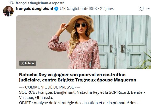 MISE A JOUR DU 26.01.2026 : Maître François va finir par avoir leur peau. Il a collé l'individu qui se fait appeler Brigitte Macron et son frère Jean Michel Trogneux au tribunal en citation directe. Difficile pour les juges de ne pas utiliser la possibilité qu'ils ont de convoquer physiquement les deux assignés. Sauf leur respect, je me permets de faire remarquer que déjà demander à JMT de présenter sa carte d'identité au Tribunal va être un grand moment. Cette carte est tout ce qu'il y a de plus authentique, le problème c'est la photo. Audience le 26/05/2026. C'est noté.