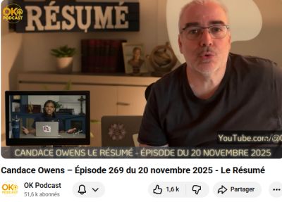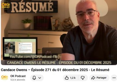 MISE A JOUR DU 29.01.2025 : France Soir c'est la presse classique, le fait que le journaliste ait bien pigé l'histoire et n'oppose pas l'argument débile "fake-news" est bon signe, c'est une préparation d'artillerie pour ne pas passer pour des billes dans deux jours. Candace Owens annonce bien ses révélations pour vendredi.