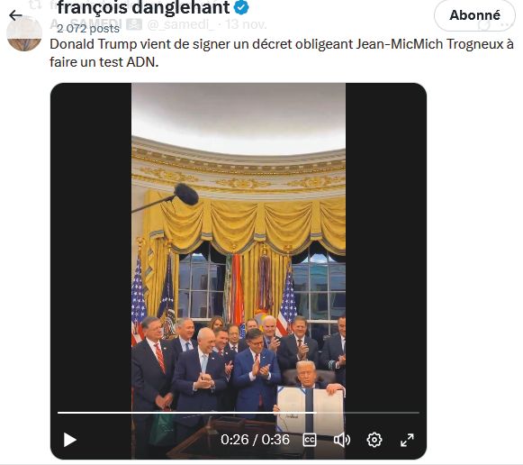 MISE A JOUR DU 25.02.2025 : En marge du BRIGITTE GATE, les vidéos vicelardes, sournoises, visqueuses de ce personnage qui voit des sionistes, des juifs et des Grands Frères partout. En plus le nom de Rothschild circule du fait de la propulsion étonnante de Macron dans cette banque, ça le fait fantasmer. De mémoire il serait soupçonné d'être une fausse barbe des services Algériens. Lesquels ont probablement fait des prélèvements ADN de la "Brigitte" (avec un coup de main du FSB ?) lors de la fameuse visite avortée de l'université d'Alger. Il est évident que Tebboune est au parfum d'où les insultes, rappelons que dans la plainte de Christian Cotten il y a le grief "atteinte à la sûreté de l'état".