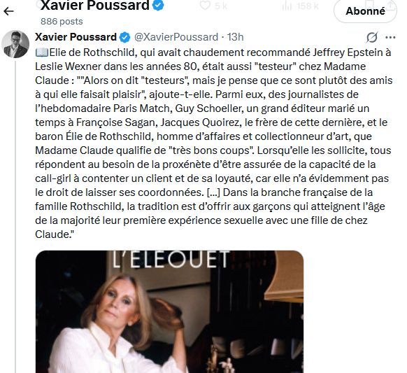 MISE A JOUR DU 03.03.2026 : Macronescu aurait été en contact avec les Rothschild à 19 ans. Or il était l'amant du personnage qui se fait appeler Brigitte Macron depuis 5 ans. Si ce témoignage est exact, cela implique que c'est Jean-Michel Trogneux qui l'a introduit auprès de cette famille. Les soupçons d'une vie sentimentale -- on va dire -- de jeunesse quelque peu dissolue seraient une explication. Cette histoire concerne donc à la fois l'Affaire Epstein et le Brigitte Gate. On note que cet épisode s'est déroulée à Deauville, comme par hasard, encore le "triangle de côte fleurie". Dans son fil "62" du 1er mars 2026 http://pressibus.free.fr/gen/trogneux/fil.html#62 , PRESSIBUS nous propose plusieurs sujets nouveaux et scabreux : "DGSE 1996", l'assassinat de deux jeunes femmes par Macron à Berlin (!!!), l'implication de Marlène Schiappa et Nicole Belloubet pour étouffer l'affaire Epstein. Il est vraiment temps que des juges d'instructions soient nommés (un seul n'y suffira pas), y compris pour confondre Jean-Michel Trogneux. Ce n'est pas très compliqué, il suffit de cueillir mon copain "Henri le Petit-Gros" et lui demander sa carte d'identité, puis de le mijoter aux petits oignons. On rappellera en effet que dans le fameux reportage de BFMTV, avec le "fact checker" Tristan Mendès-France, un champion de la vérité si je mens, c'est bien le Petit Gros qui est censé être Jean-Michel Trogneux :